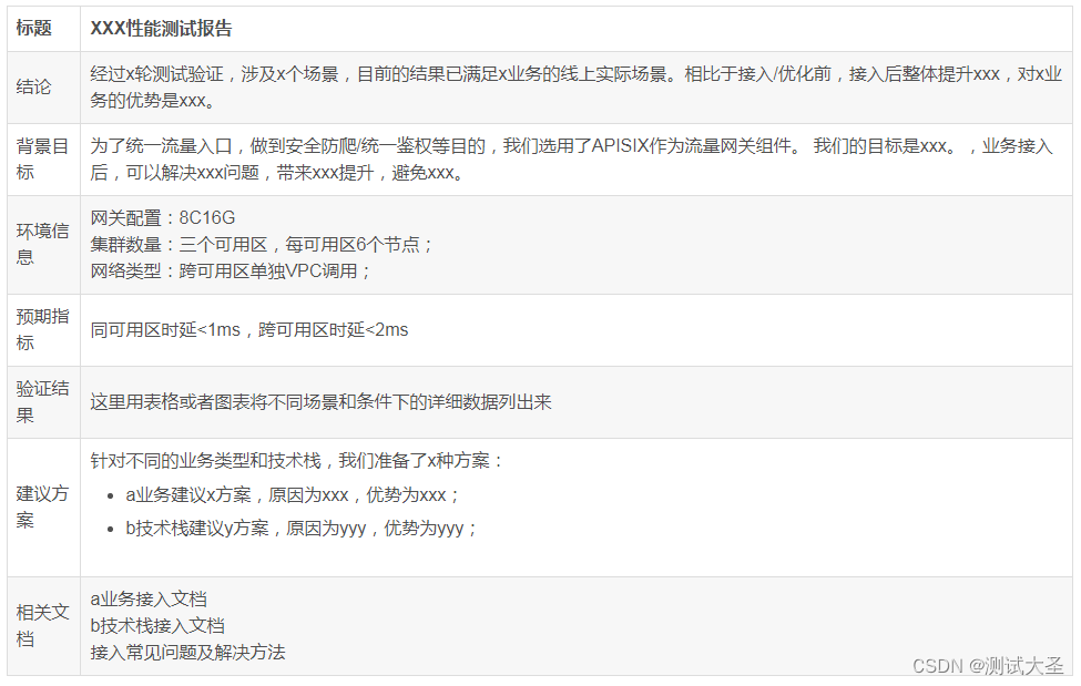 写测试报告是很多测试同学比较头疼的问题,但很多时候报告的作用远超形式主义的为老板汇报的作用。下面是我总结的一个性能测试报告的模版,供大家参考: