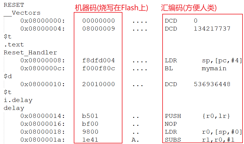 - 设置栈:CPU会从0x08000000读取值,用来设置SP(我们的程序里再次设置了SP)