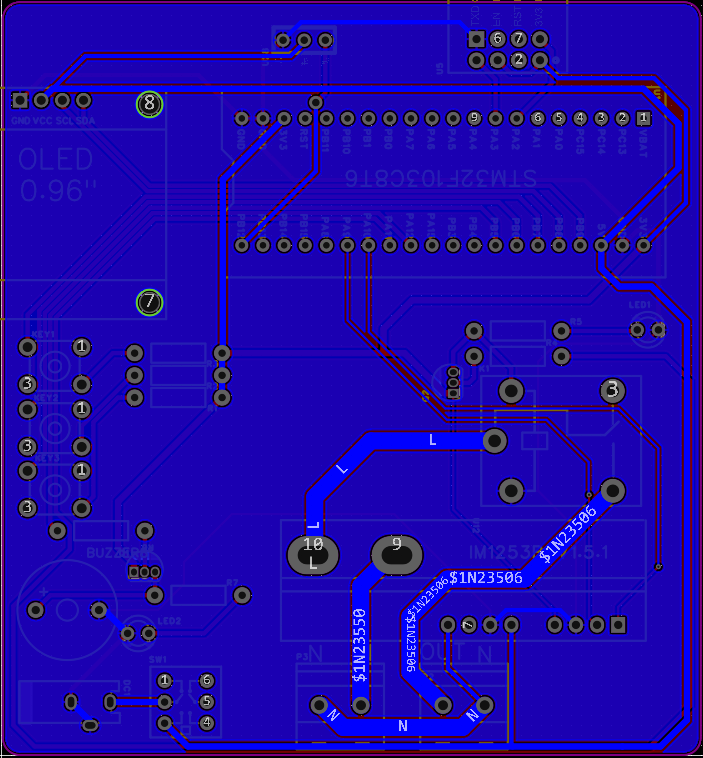 4、当充电时,检测到超过阈值,则触发蜂鸣器报警,并关闭电源,防止电流过大出现意外情况。