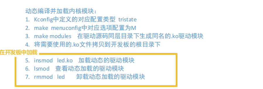 (3)最后通过动态编译的方法将新的驱动模块加载到开发板中