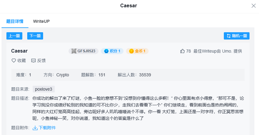 今天来跟大家分享一下 攻防世界 中 Crypto 新手区的 Caesar