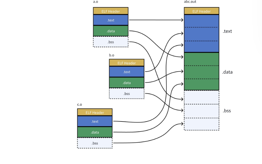 这个合并工作在形成ELF的时候,合并方式就已经确定了,具体合并原则被记录在