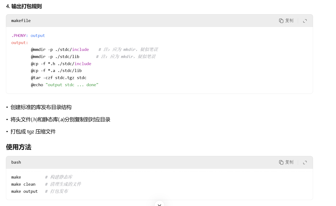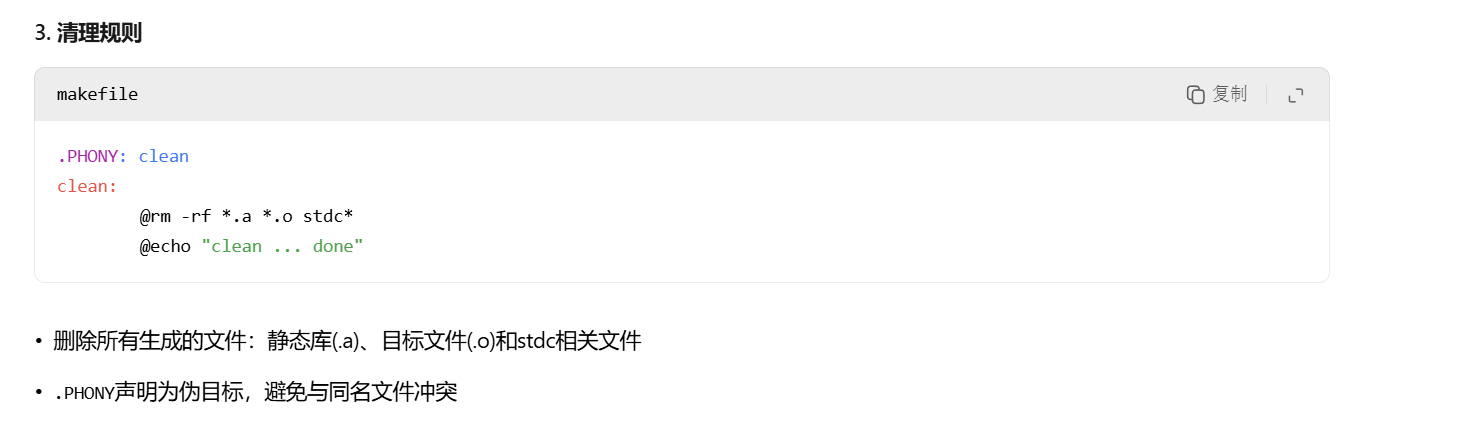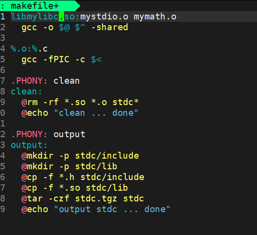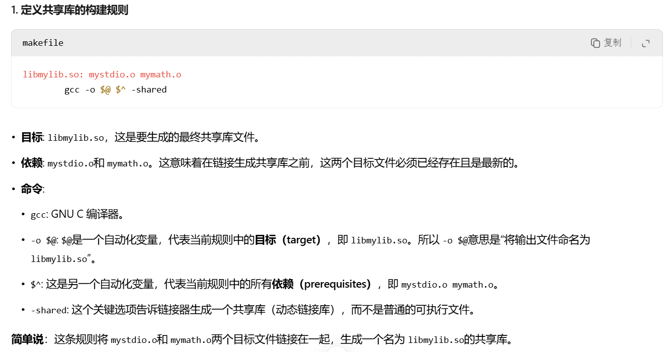 注意,我们可以把静态库和动态库的制作放在同一个makefile里,只是其中一个的生成需要以make 库文件名的形式才能生成(不能一次生成,得make生成一个,make 名字生成一个),而且先生成的那个需要加句rm *.o,因为动态库和静态库的gcc选项不一样,生成的.o自然是不一样的。