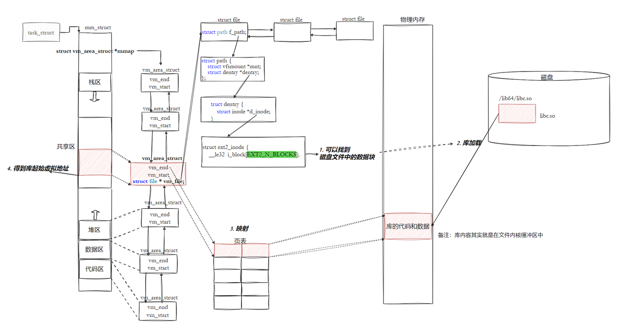 库已经被我们映射到了当前进程的地址空间中