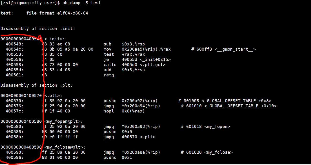 一个ELF程序,在没有被加载到内存的时候,本来就有地址,当代计算机工作的时候,都采用"平坦模式"也就是绝对地址进行编址,从而进行工作。所以也要求ELF对自己的代码和数据进行统一编址,下面是objdump -S反汇编之后的代码
