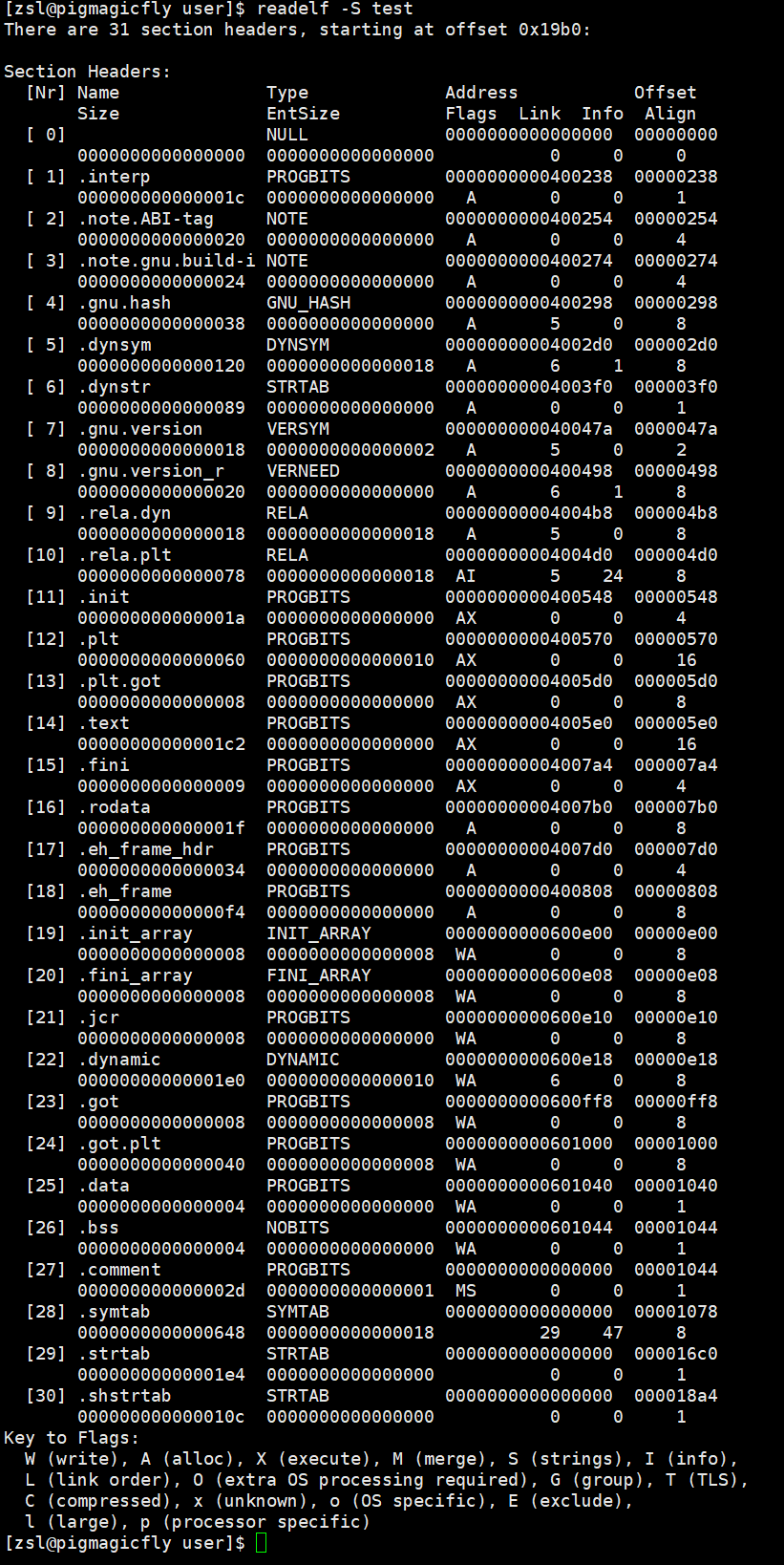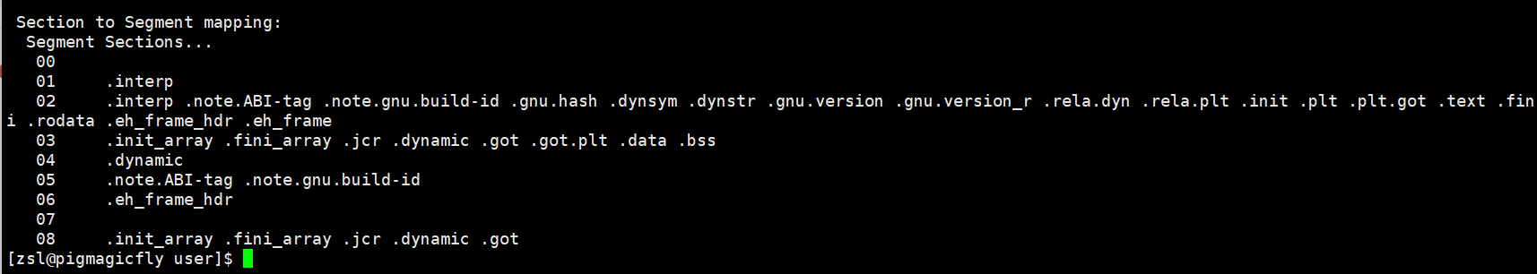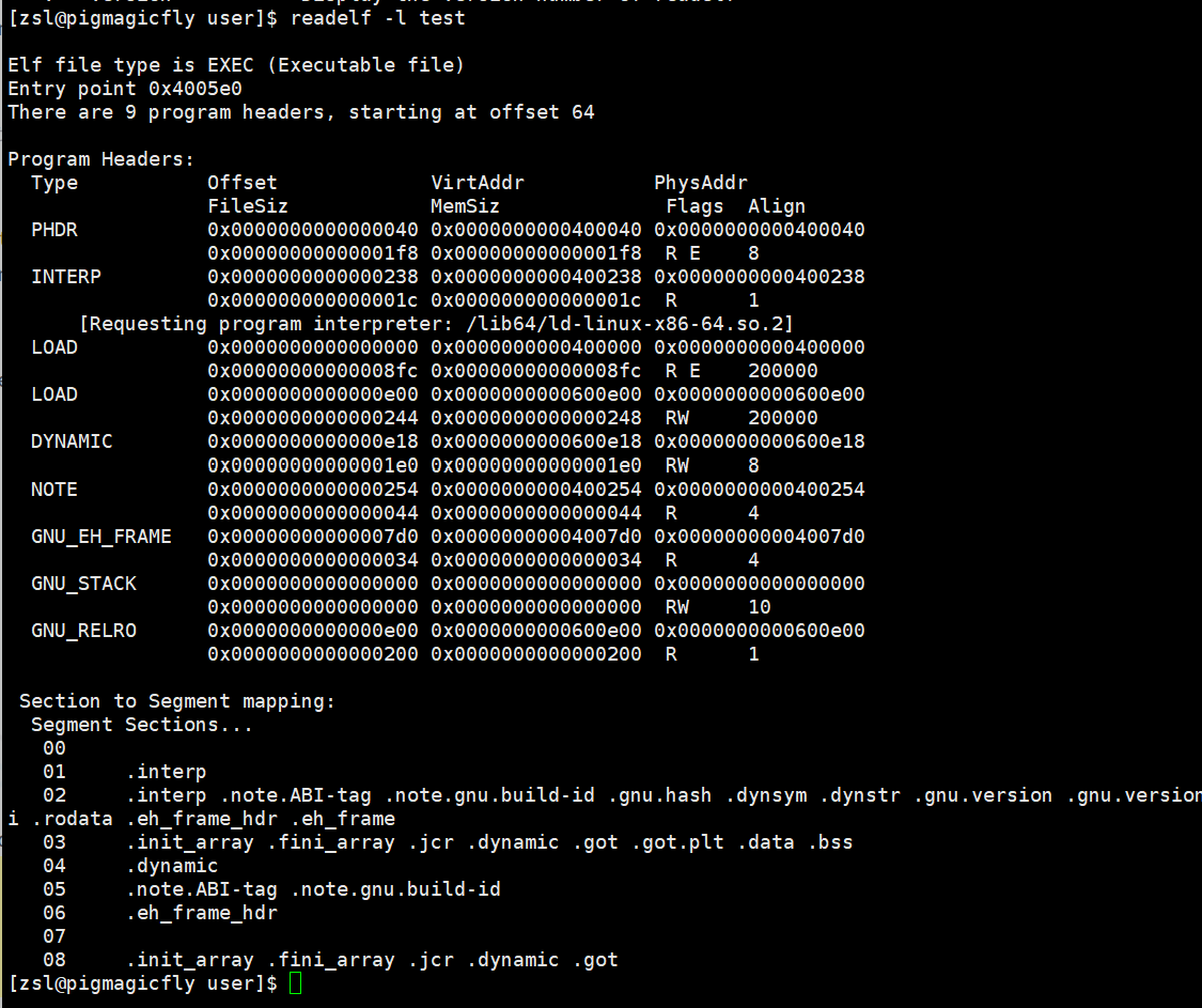 了 ELF 的 程序头表(Program header table)中下面是查看可执行程序的section