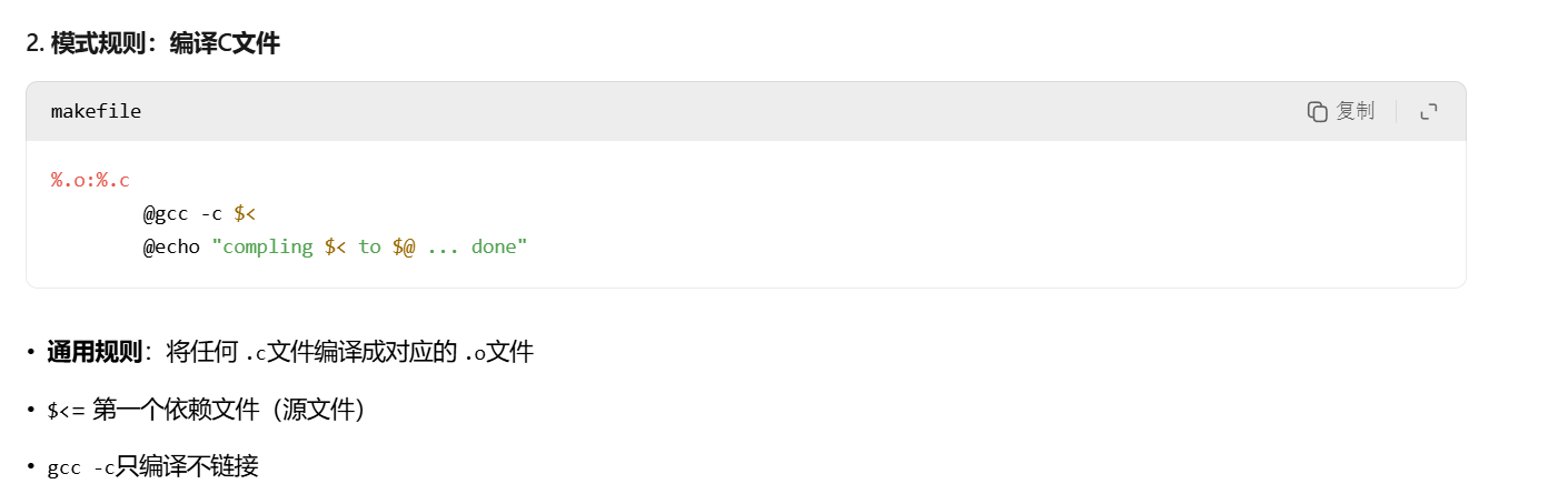 编译的过程其实就是将我们程序的源代码翻译成CPU能够直接运行的机器代码。gcc -c就是对.c的源文件进行编译,生成同名.o的目标文件。注意如果有多个目标文件,不需要全部重新编译,把有改动的源文件重新编译即可。