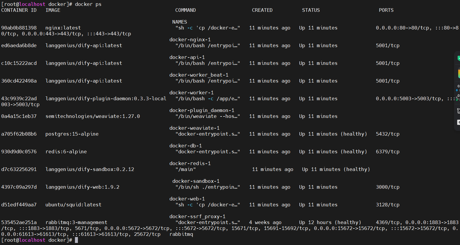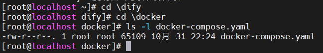 切换到/root/dify/docker目录(docker-compose.yml的所在目录)