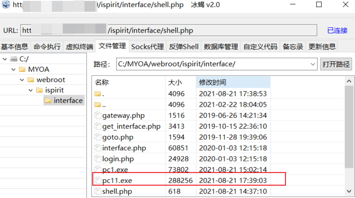 再用冰蝎传到刚刚的Windows 7 (PC 1)的目录下
