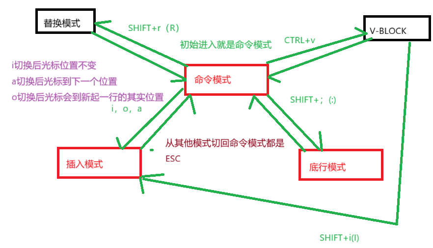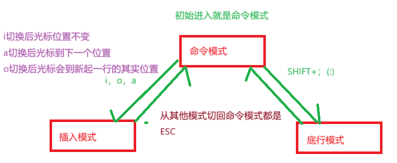 初始进入时候是命令模式 下面是三种方式的或者转换关系