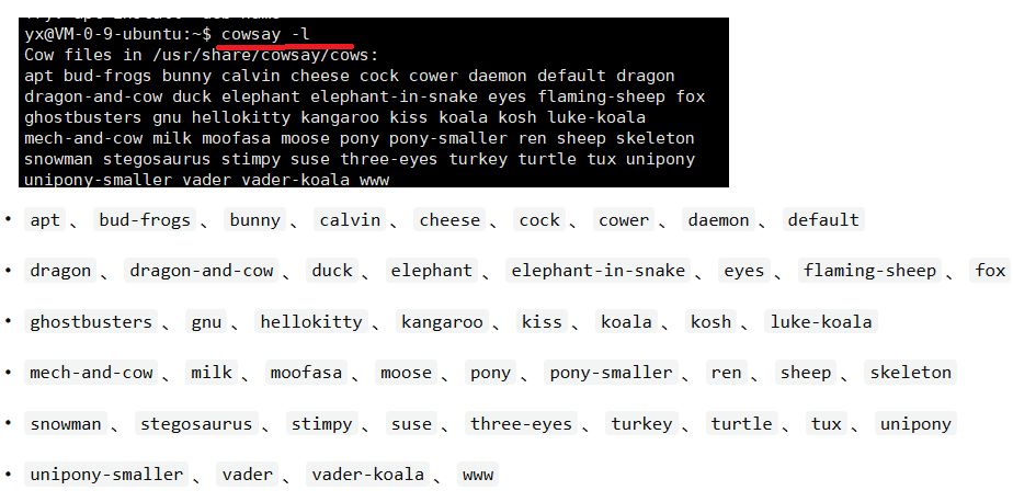 cowsay软件使用方法 cowsay 要输出的内容