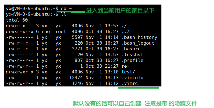 如果没有默认存在的话.vimrc 也可以由我们重新创建然后添加配置