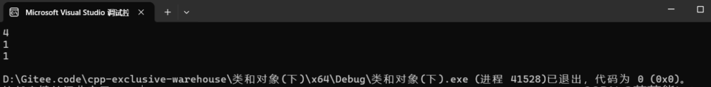 再来看个练习 #include<iostream> using namespace std; class A { public:A(){cout << " A()" << endl;}~A(){cout << " ~A()" << endl;} };class B { public:B(){cout << " B()" << endl;}~B(){cout << " ~B()" << endl;} };class C { public:C(){cout << " C()" << endl;}~C(){cout << " ~C()" << endl;} };class D { public:D(){cout << " D()" << endl;}~D(){cout << " ~D()" << endl;} };//构造顺序 //析构顺序 C c; int main() {A a;B b;static D d;return 0; }--这个题大家可以自己思考一下,答案自己运行一下就出来了