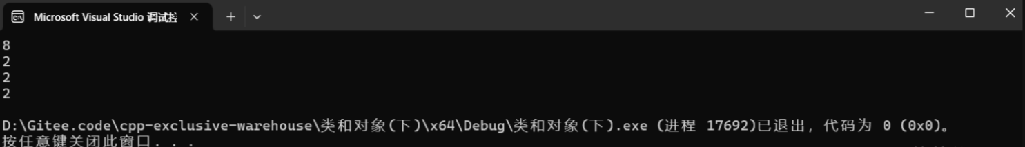 private://初始化列表按照成员变量在类中的声明顺序初始化//这里我们发现_a2先声明int _a2 = 2;int _a1 = 2;