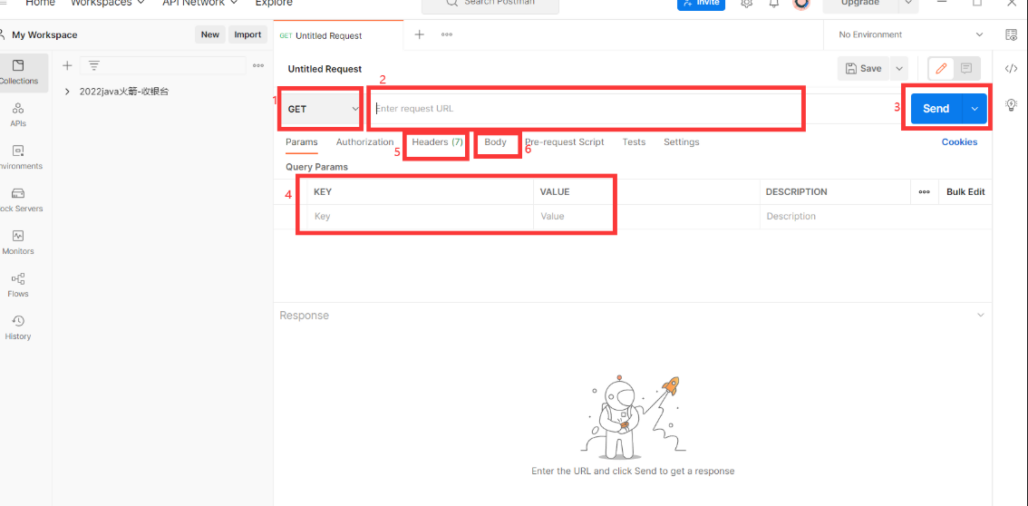 3.发送请求按钮。请求参数填写完成之后,尝试发⼀次请求。