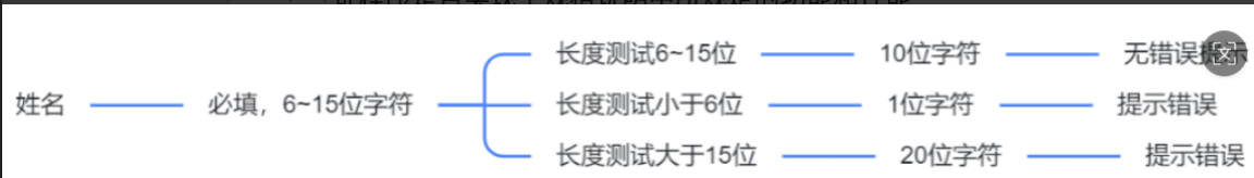 上述设计的测试⽤例,存在⽤例还未完全设计完成,“姓名必填,6~15位的字符类型”,这样⼀个具体的需求该如何来设计测试⽤例呢?
