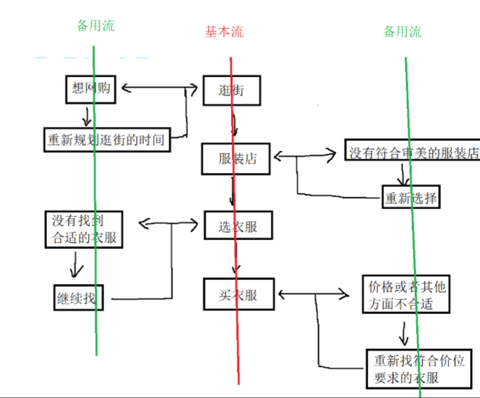 4.编写测试⽤例(先写基本流、然后按顺序写备用流)