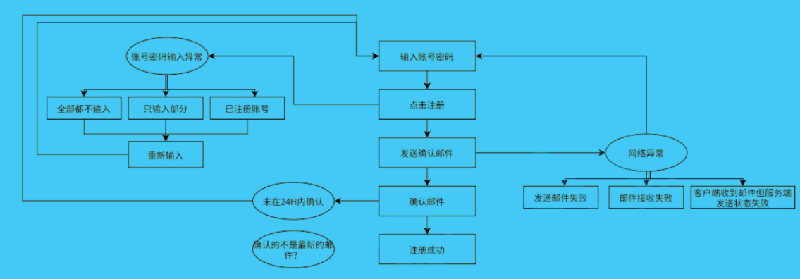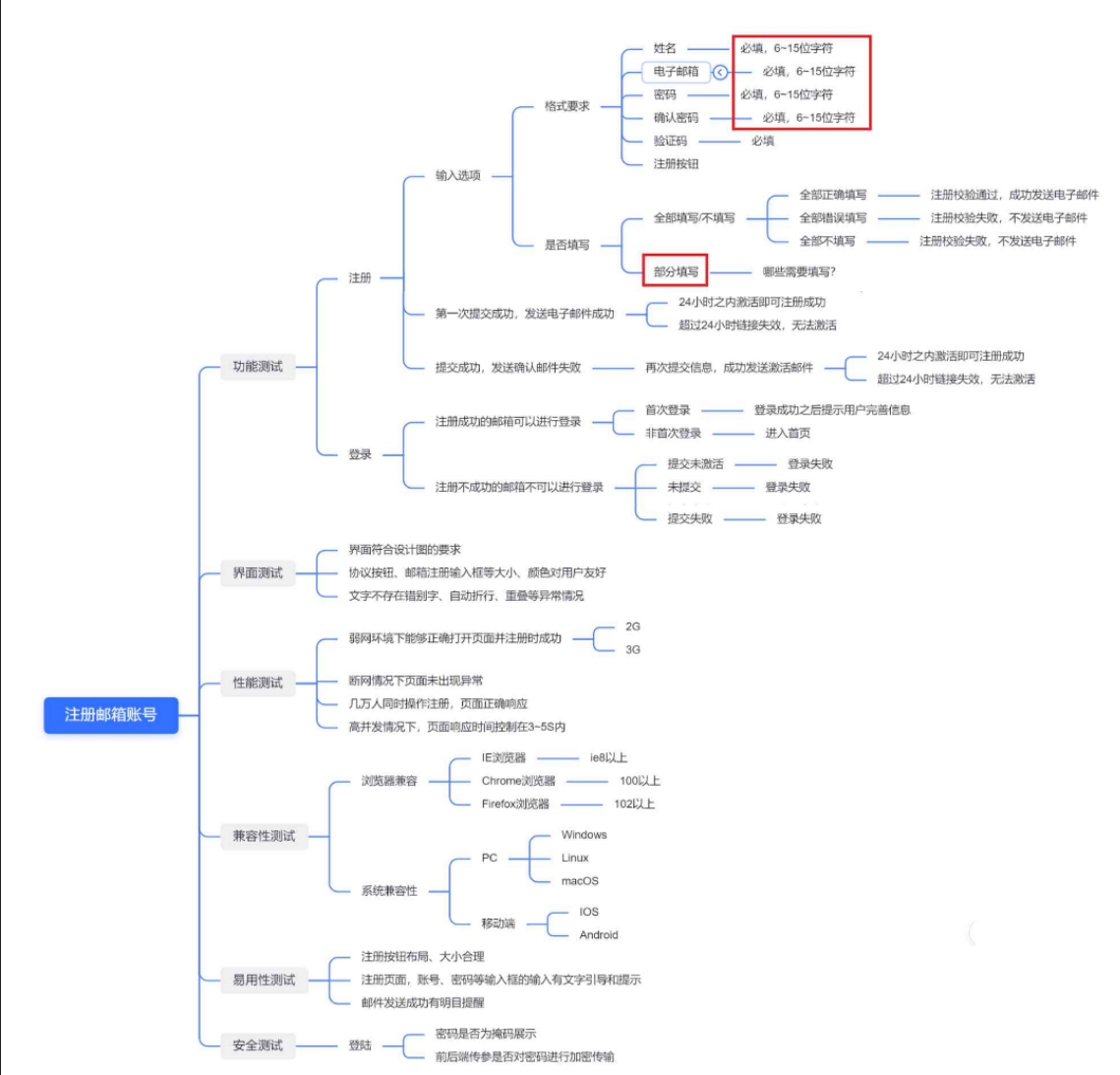以该注册邮箱账号需求为例,我们来设计测试⽤例。