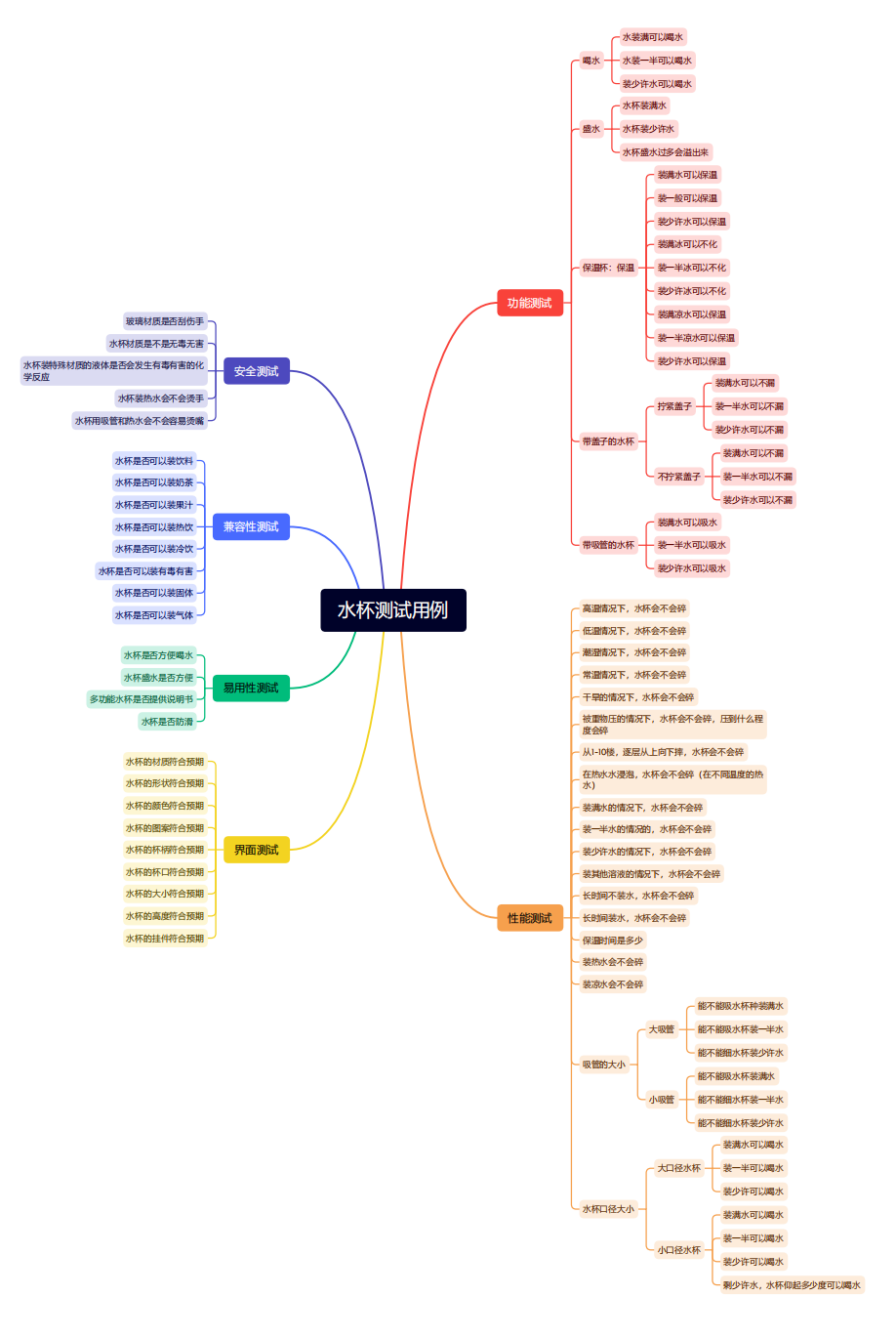 设计测试⽤例的万能公式:功能测试+界⾯测试+性能测试+兼容性测试+易⽤性测试+安全测试。