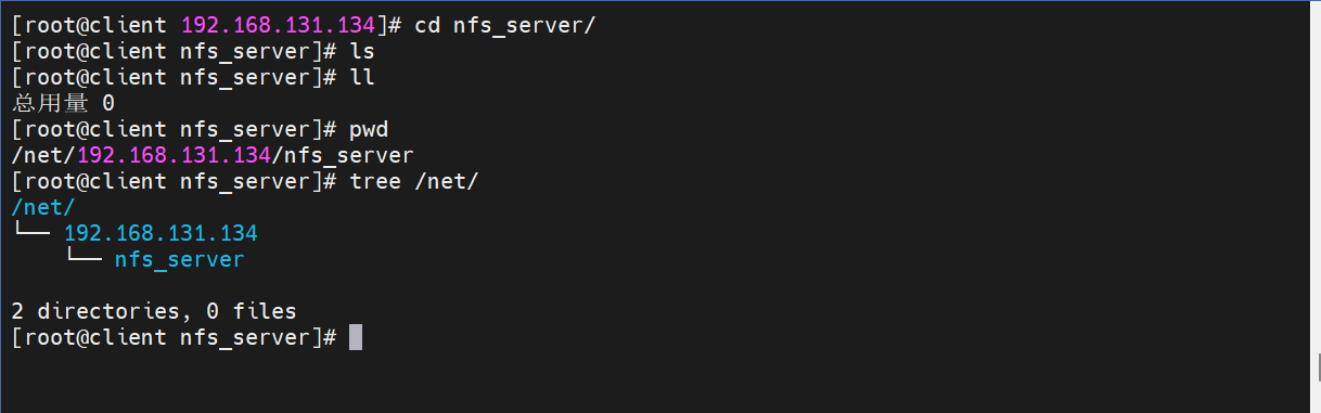 [root@client ~]# cd /net/192.168.131.134   ##如果可以进入说明自动挂载成功