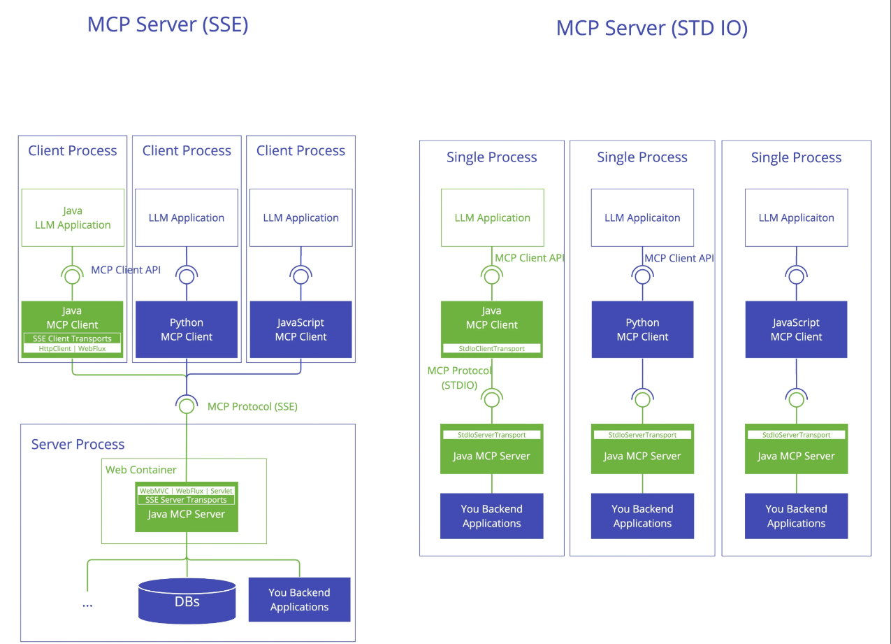 和客户端一样,它也可以通过多种方式进行数据传输,比如Stdio标准输入/输出、基于Servlet/WebFlux/WebMVC的SSE传输,满足不同应用场景。