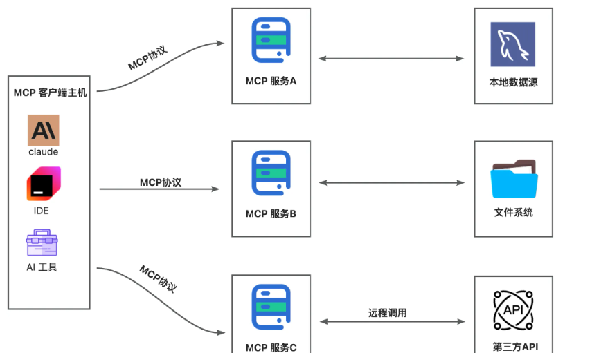 这种设计使得客户端和服务端完全解耦,任何语言开发的客户端都可以调用MCP服务。