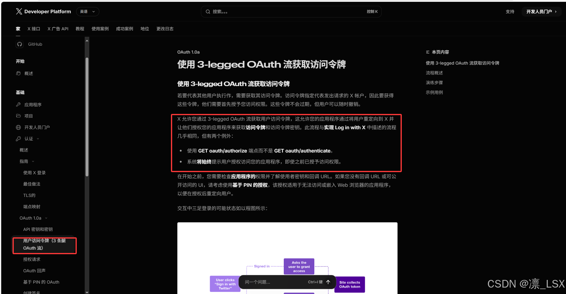 之后点到指南的使用X登录,要求我们知道如何使用OAuth 1.0a,那我们要先看看1.0a怎么用