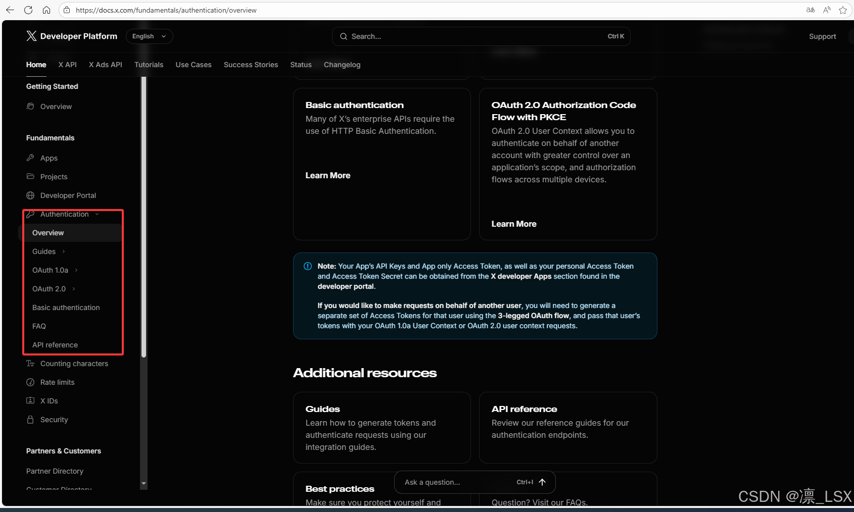 前面的使用Twitter sdk或者firebase的方式其实都是帮我们做了OAuth认证过程,我们也可以手动去处理这个过程,可以参考文档里认证部分的内容。文档链接:https://docs.x.com/fundamentals/authentication/overview 这里面各项内容都看一下