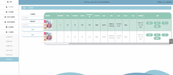 订单管理:管理员可以对订单信息进行管理,包括查看订单详情、修改订单状态等。