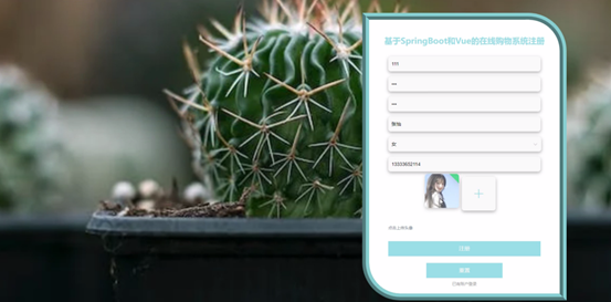 会员注册,在注册页面填写会员账号、密码、会员姓名、性别、联系方式、头像等信息,进行注册,如图5-9所示。