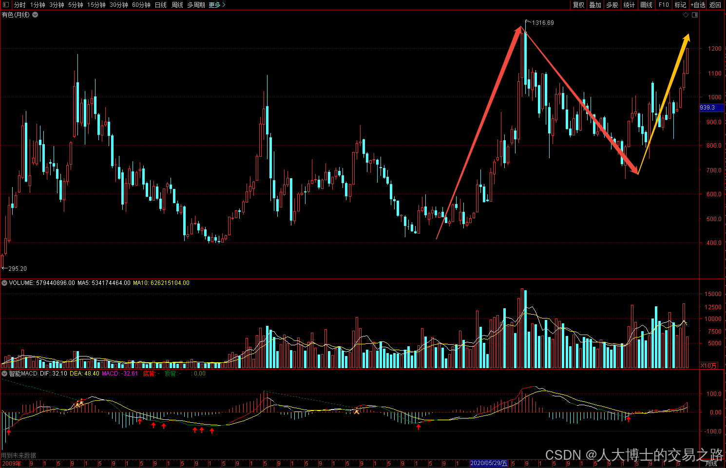 月线走势和极限走势一致,美元放水大宗商品涨价的前提下,走出一波类似20年前的大牛市的概率较大。