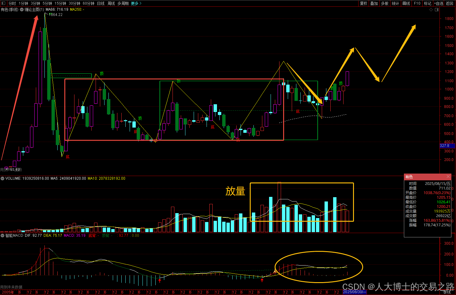 2019年3月至2024年6月,季线底部放巨量,目前形成上涨线段,macd在零轴上方形成典型的金叉形态,预计后续会继续延续上涨走势。