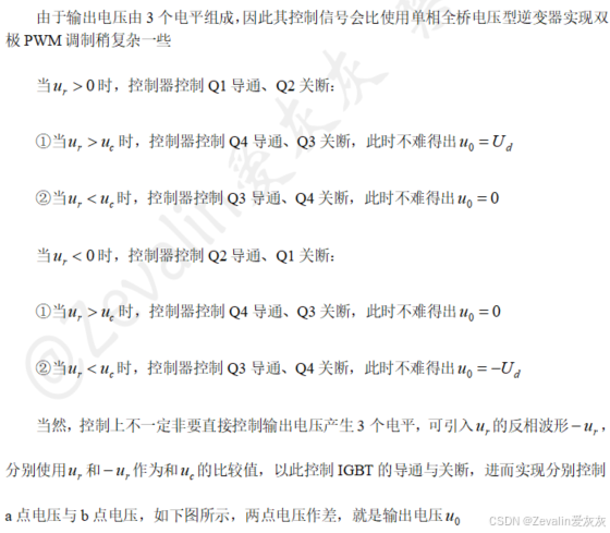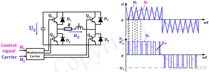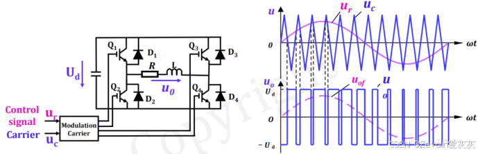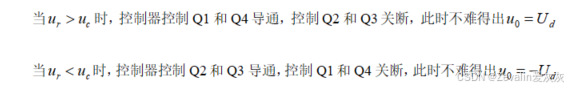 (1)使用单相全桥电压型逆变器实现双极PWM调制的电路图如下,其中为期望获得的输出电压,