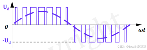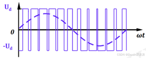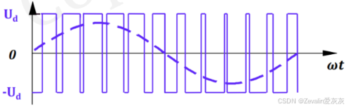 ②基于前面半正弦波的等效,还可以使用一系列占空比不同的脉冲来表示正弦波,这就是双极的PWM调制,一般双极的PWM调制更常用。