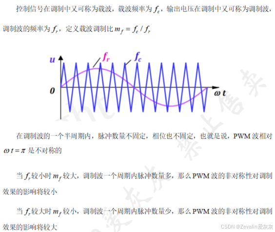 ①基于前面半正弦波的调制,还可以使用一系列占空比不同的“负”脉冲来表示半正弦波,两两组合,就是单极的PWM调制。
