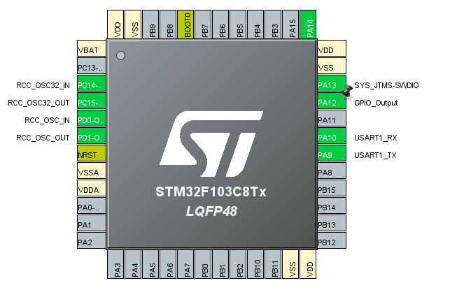 我们要控制LED灯闪烁根据原理图将PA12设为GPIO_OutPut