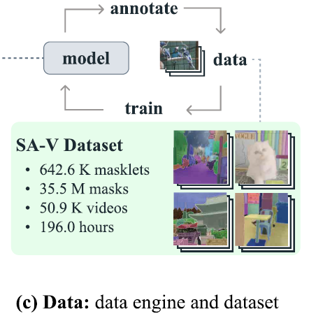 我们提出了 Segment Anything Model 2 (SAM 2),一个旨在解决图像与视频中可提示(promptable)视觉分割问题的基础模型。 我们构建了一个数据引擎(data engine),通过用户交互不断改进模型与数据,用于收集迄今为止最大规模的视频分割数据集。
