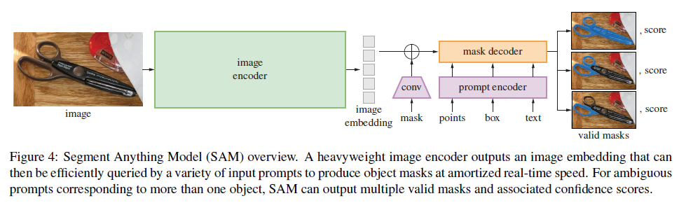 图像编码器(image encoder)、灵活的提示编码器(flexible prompt encoder) 和 快速的掩码解码器(fast mask decoder)。