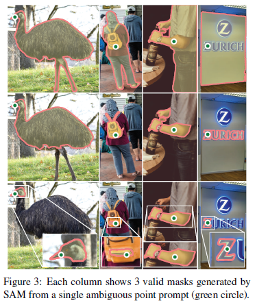 与 SAM 一样,对于存在多义性(例如多个相似目标)的情况,模型会输出多个 masks,并选取最合适的结果(最高 IoU 的掩码)。