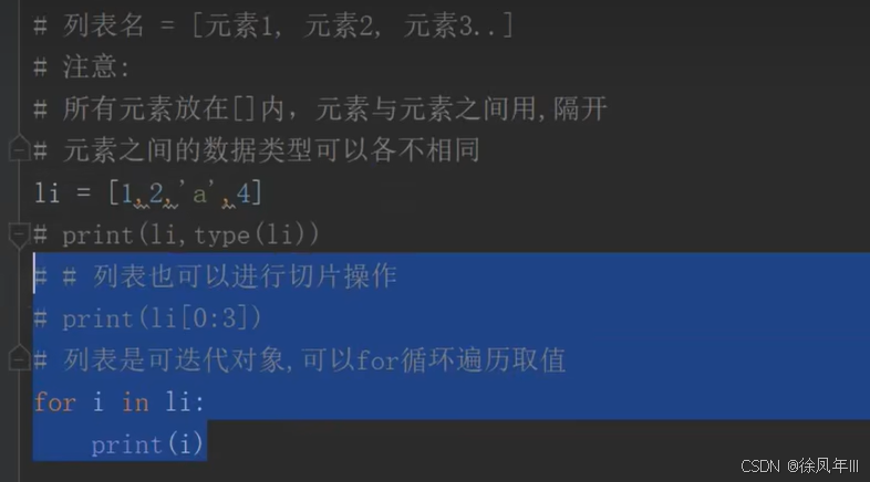 print(i,type(i))print(i[0:3]) #可以进行切片for a in i:print(a) #可以用for遍历