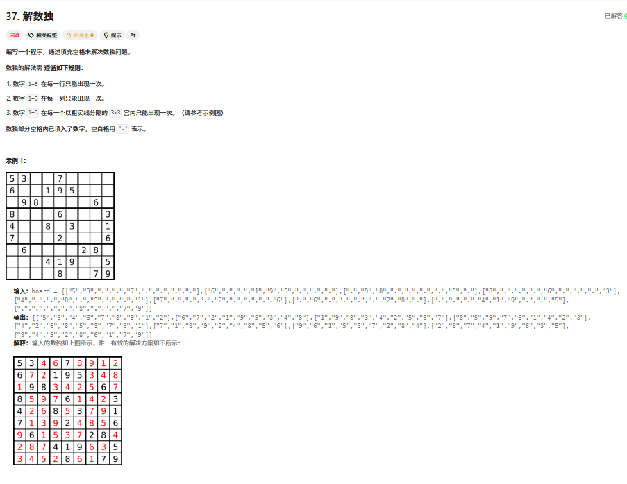- 解数独:填充所有空格,得到一个符合规则的完整数独。
