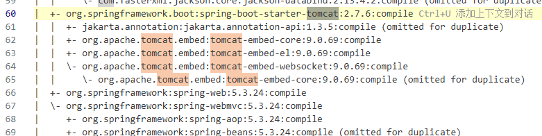 tomcat-embed-core这个依赖时,请不要自动包含它所依赖的某些传递性依赖 (transitive dependencies)。