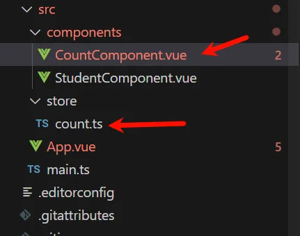 每个共享数据的组件都需要创建一个容器在 src/store/下的对应文件里,如 count.vue 需要创建一个 count.ts 文件用来存放他的共享数据。具体当然也可根据情况创建一个没有对应组件的存储文件,存放一些公共数据和方法。
