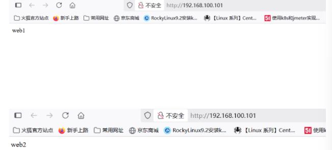 | web2 | 192.168.100.2 | 后端 Web 服务器 | 与 web1 形成负载分担,提升服务可用性与并发能力 |