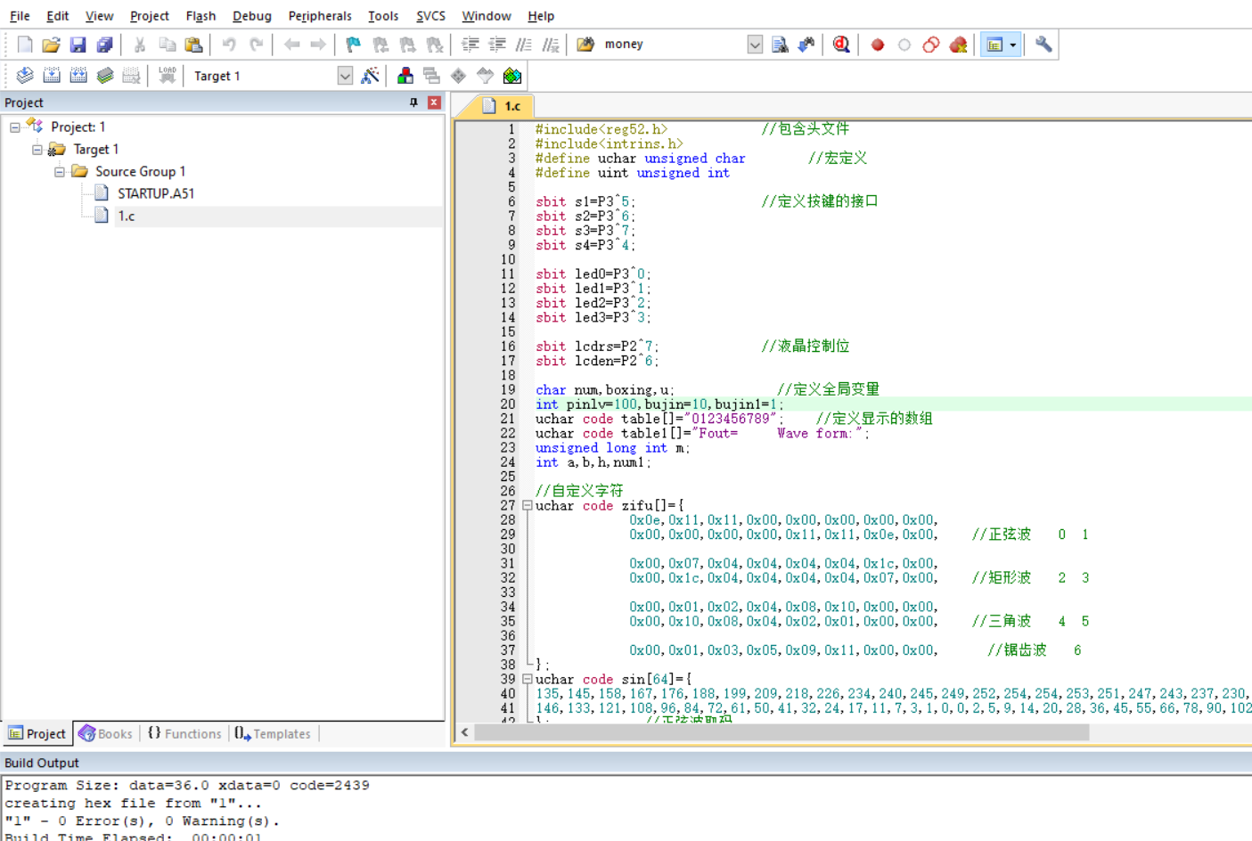 uchar code table1[]="Fout= Wave form:";