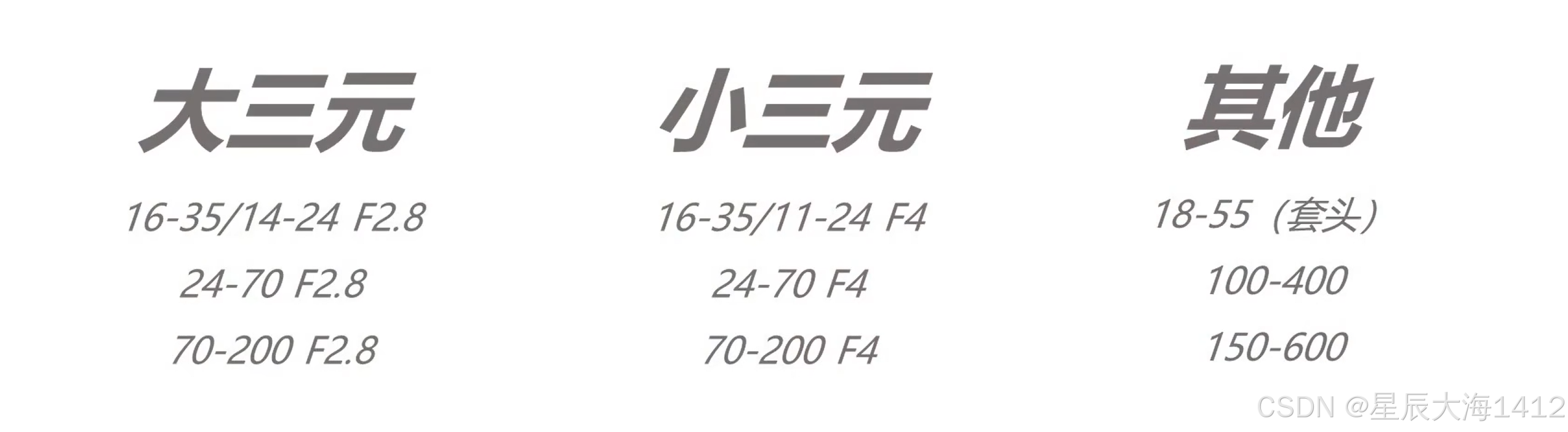 - 大三元 / 小三元(组合覆盖全的变焦镜头)