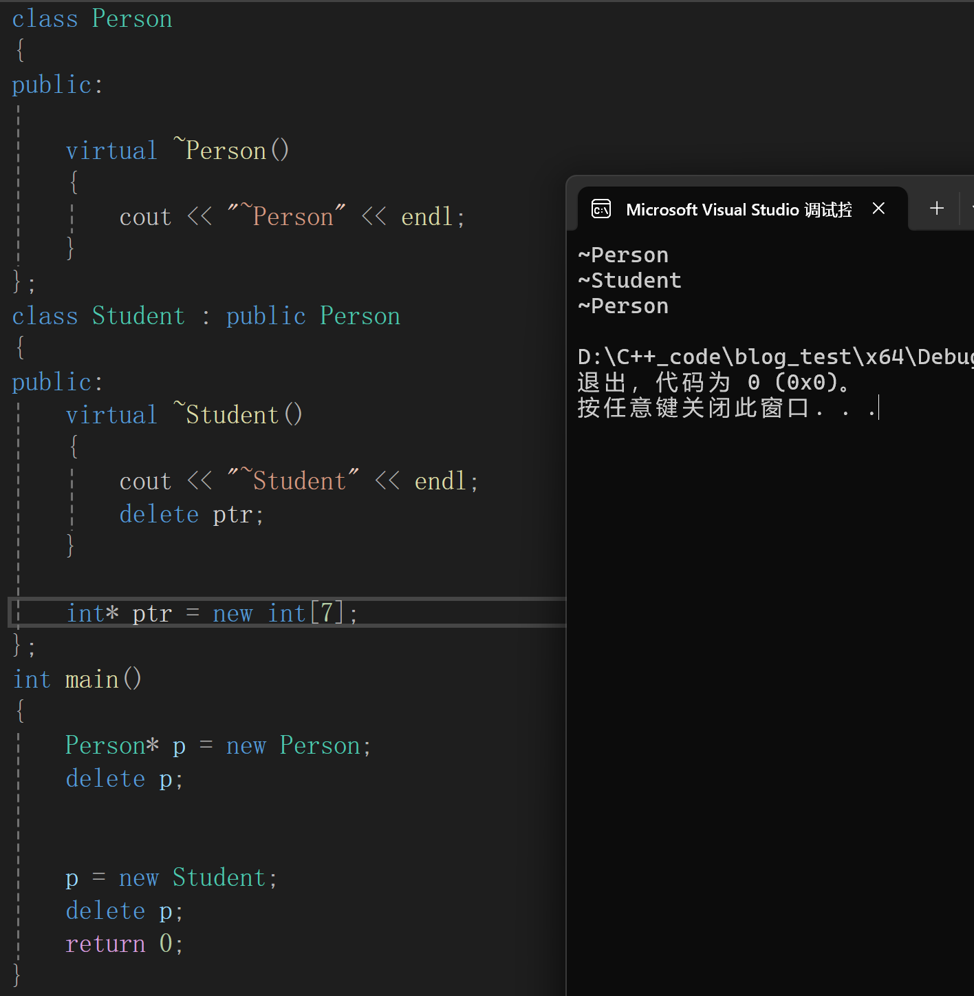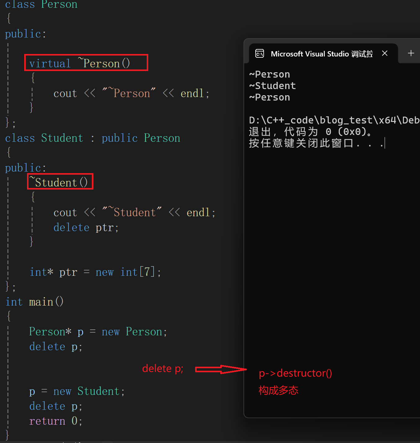 析构函数加virtual是虚函数重写,因为析构函数都被处理成destructor这个统一的名字