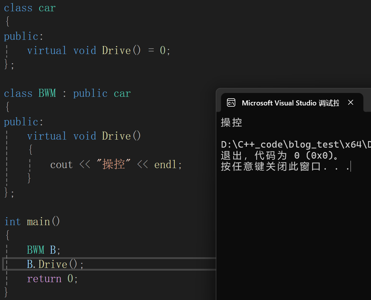 类才能实例化出对象。纯虚函数规范了派生类必须重写,另外纯虚函数更体现出了接口继承。