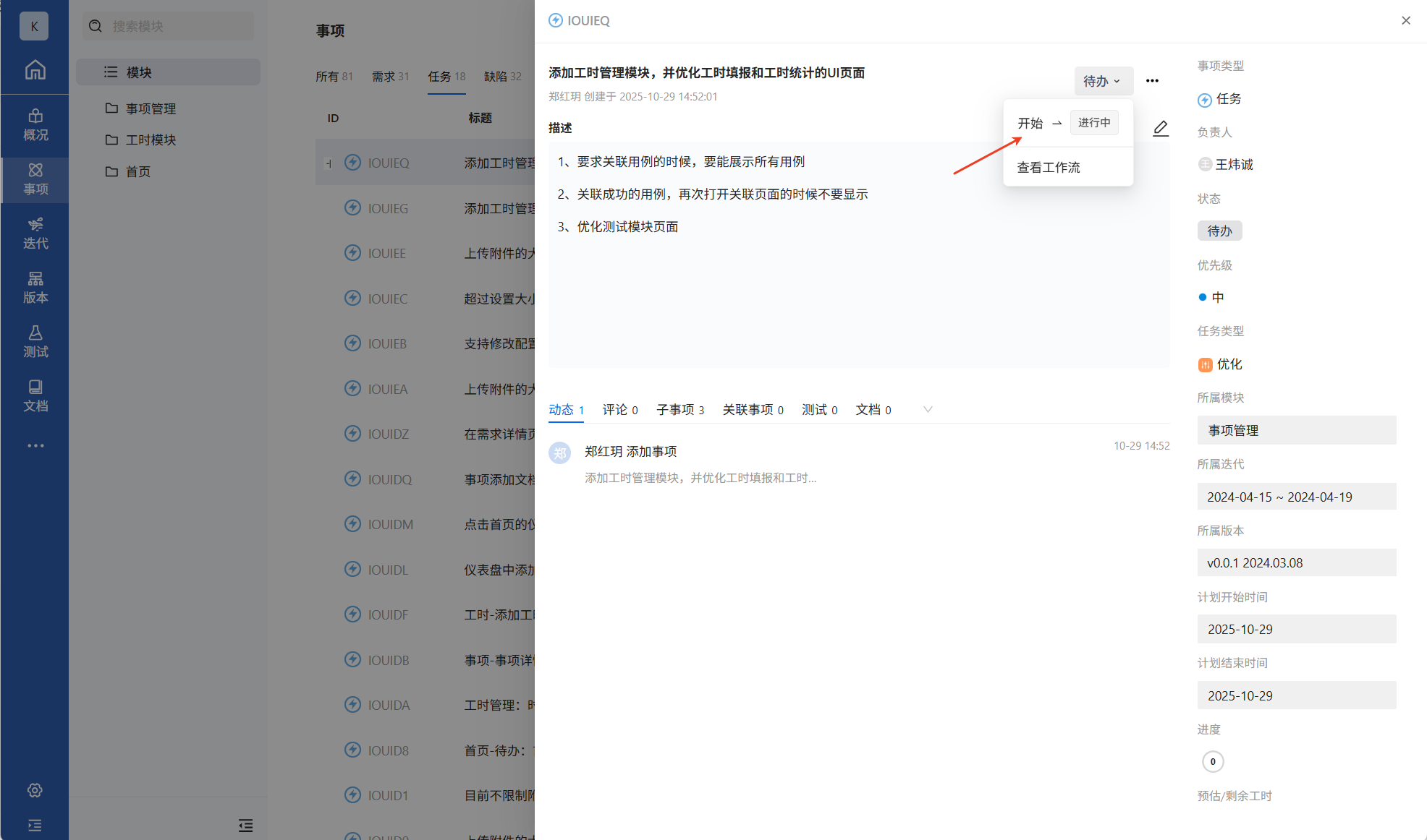 在处理任务过程中,可以通过工时来记录每天的任务进展