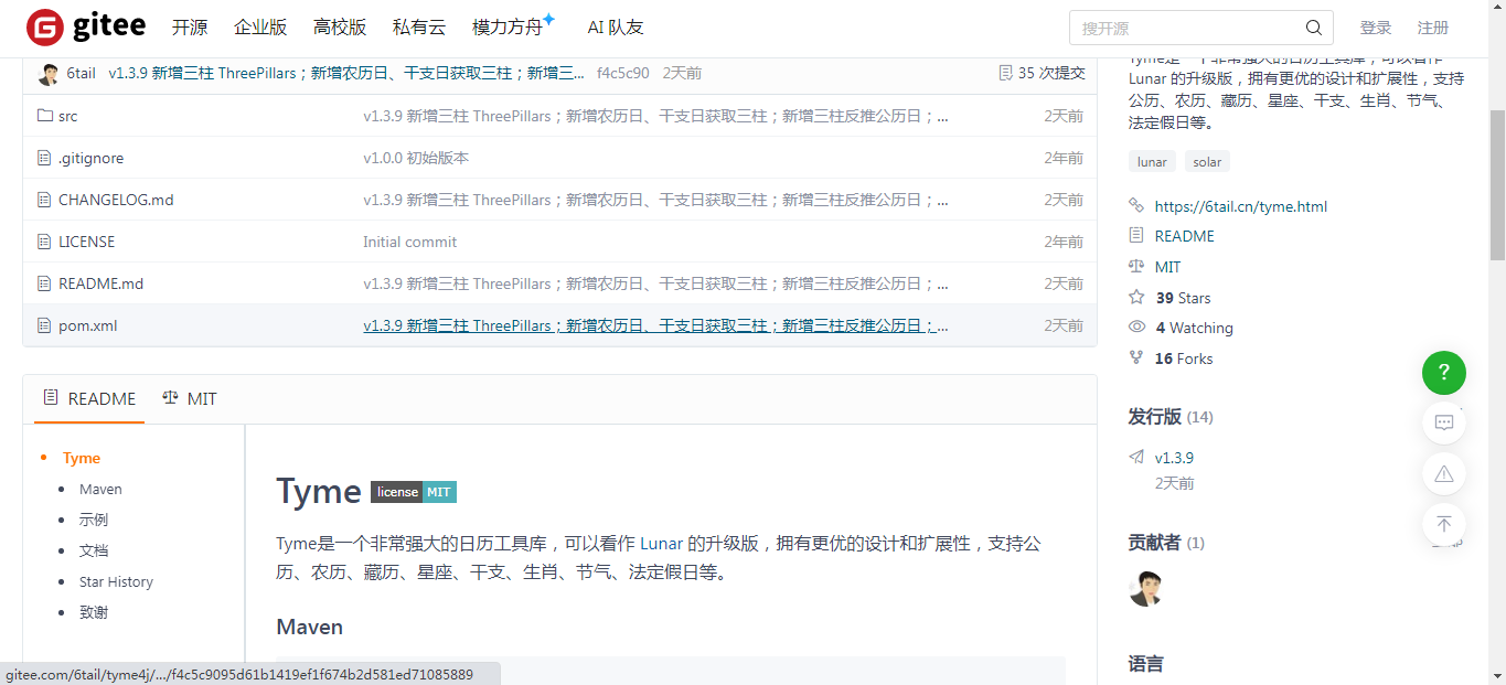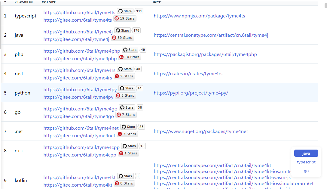 为了让第一次看博文的朋友对Tyme也有一个基本的认识,知道Tyme可以做什么。因此首先给大家对Tyme进行简单的介绍,了解这个组件大概可以做什么。并且简单介绍Java的支持分支。